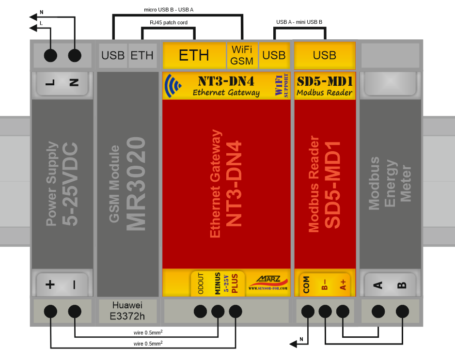 - Modbus čtečka elektroměrů SD5-MD3