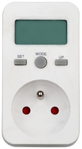 Měřič spotřeby do zásuvky 230VAC. Měří příkon spotřebiče a spotřebovanou energii. Možnost zobrazení spotřeby v Kč.